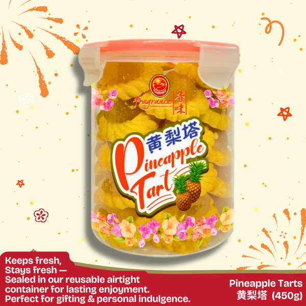 Pineapple tarts are a must-have for Chinese New Year. Our open-faced handmade pineapple tarts feature a savoury, flaky pastry topped with generous amount of pineapple jam. Packed in a 4-side lock airtight container to maintain freshness and preserve aroma.